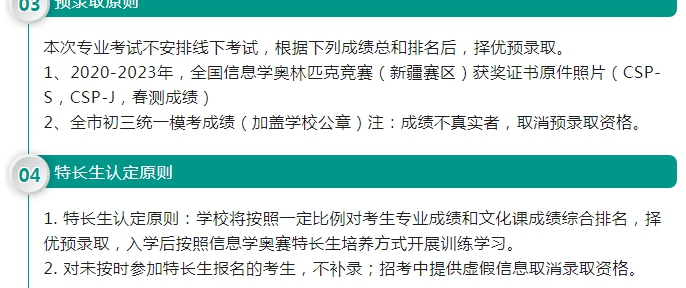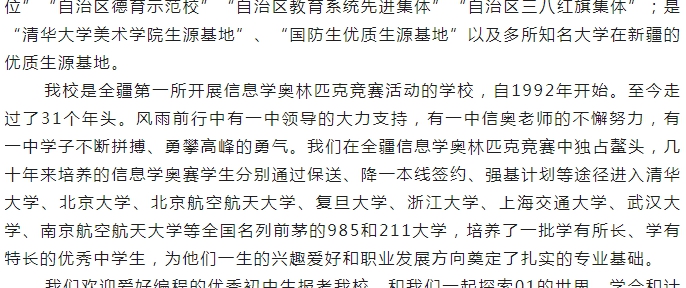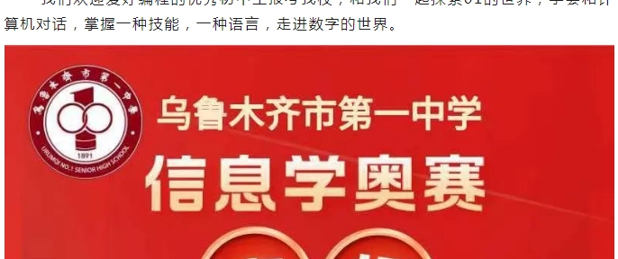 乌鲁木齐市第一中学2023年信息学奥林匹克竞赛特长生招生简章
