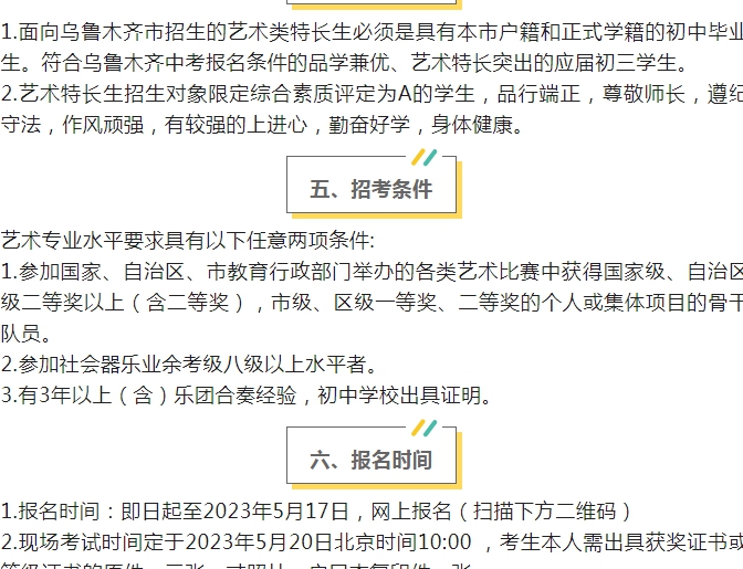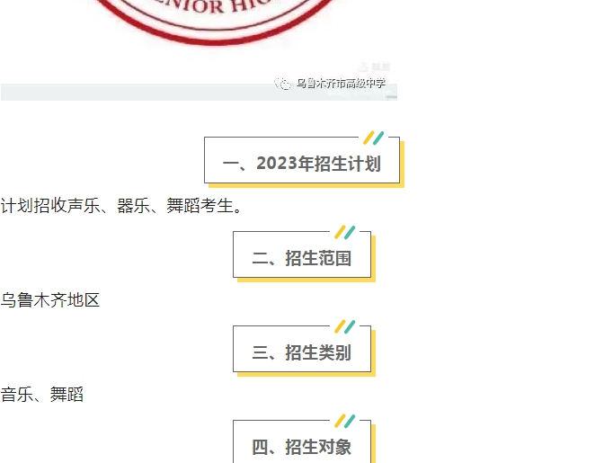 乌鲁木齐市高级中学2023年音乐特长生招生简章