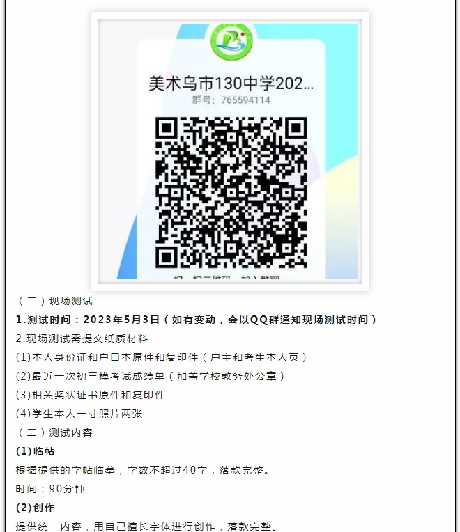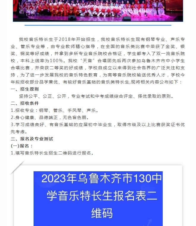 乌鲁木齐市第130中学体育艺术特长生招生...