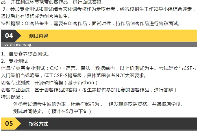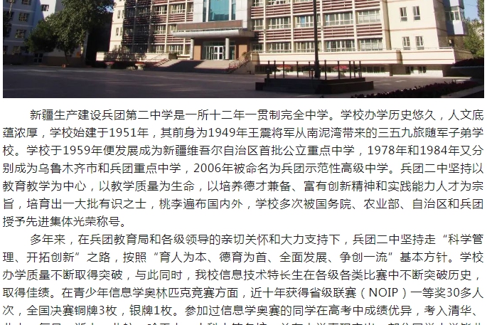 新疆生产建设兵团第二中学2023年信息技术特长生招生简章